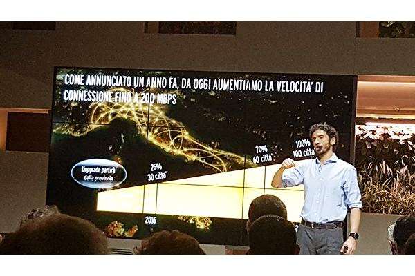 Milano, 5 aprile 2016 – Nel corso di una conferenza stampa dedicata, Fastweb ha annunciato l’ampliamento della rete in fibra sul territorio italiano con picchi di download fino a 200 Mbps, circa 24 Mb/s al massimo della banda. Inoltre, l’operatore giallo ha promesso di coprire il 50% della popolazione (13 milioni di famiglie e imprese) entro il 2020 partendo dai piccoli/medi comuni: si comincia da Arezzo, Viterbo, Riccione, Rimini, Trento, Massa, Pistoia e Caserta per poi arrivare in nuove città ogni mese.