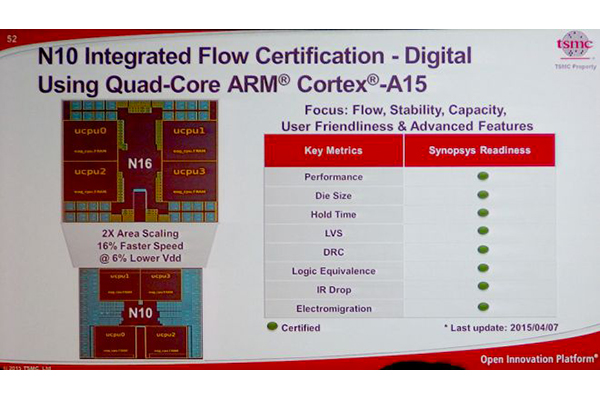 Il chip annunciato da TSMC è ovviamente un prototipo ancora in fase di sviluppo, gli unici dettagli noti sono quelli relativi all’architettura (Cortex-A57) e alla quantità di core pari quattro. Nonostante si parli di un miliardo di dollari investiti per la realizzazione di un primo impianto ad-hoc, TSMC ha annunciato un inizio della produzione stimato per fine 2015 con spedizioni dalla metà del 2016.