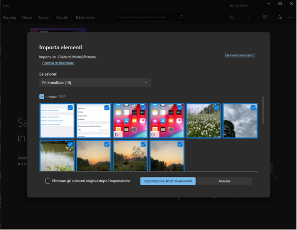 Al termine dell’importazione, le foto saranno in una cartella all’interno della cartella Immagini.