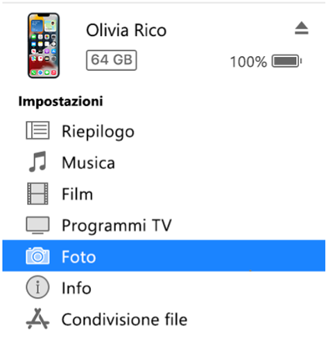 - Dal pannello sulla sinistra, clicca sul tuo iPhone.