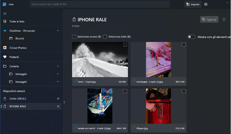 Collegando l’iPhone al PC, verrà riconosciuto dall’applicazione ‘Foto’ come un’unità multimediale esterna collegata. Sarà sufficiente eseguire la procedura di importazione per completare il processo di trasferimento delle foto da iPhone al PC.