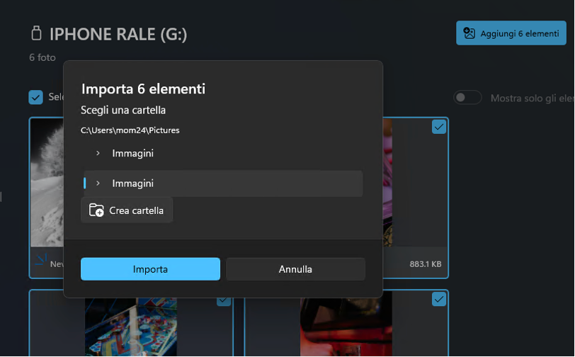 - Seleziona le foto o le cartelle che desideri trasferire.