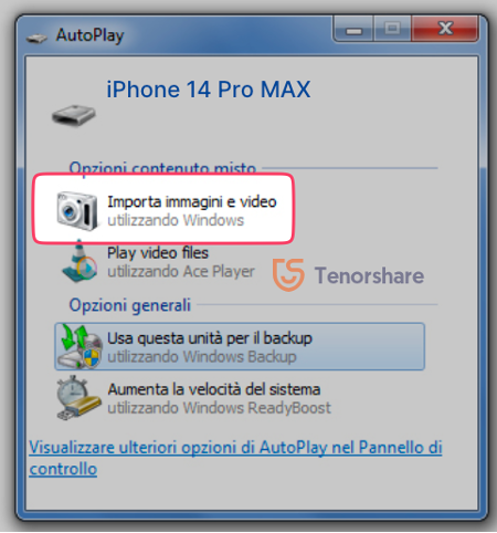 Come trasferire foto da iPhone a PC Windows 7 con AutoPlay