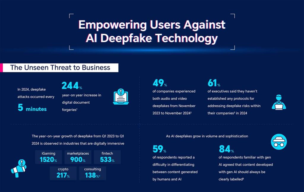 In quest’ottica, conclude Kamiya, “l’uso dell’AI Deepfake Detection sui dispositivi mobili è un’arma potente per combattere i deepfake, in grado di rilevare difetti nei contenuti deepfake che potrebbero passare inosservati all’occhio umano, come il contatto visivo, l’illuminazione, la nitidezza dell’immagine e la riproduzione del video, dissuadendo le persone dal continuare a impegnarsi con il potenziale rischio per la loro sicurezza”.