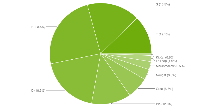 La cosa strana che si può notare nella classifica odierna è che la versione più utilizzata è ancora Android 11, uscito nel 2020, a circa due anni e mezzo dal suo rilascio, con una quota di mercato del 23,5%.