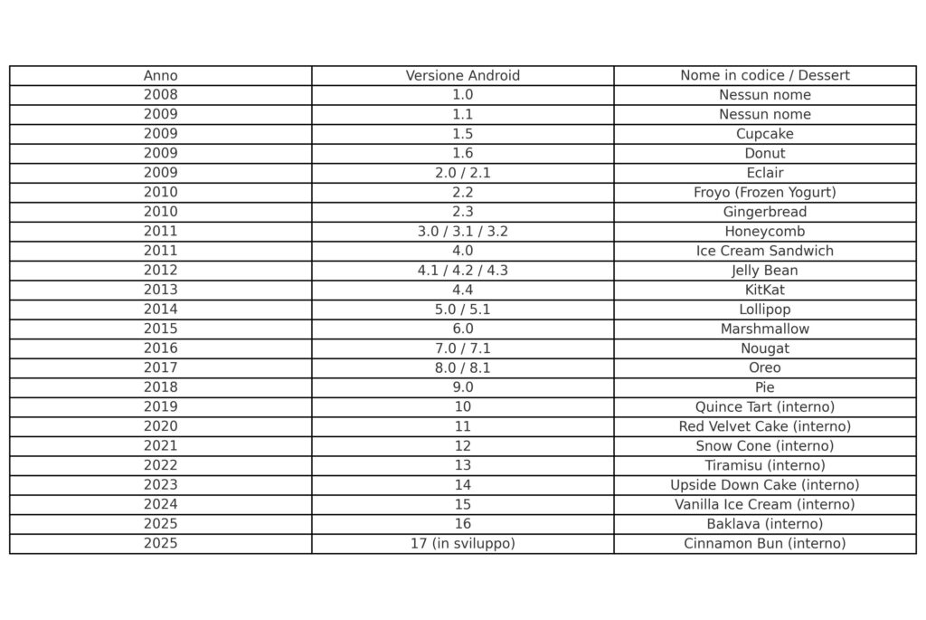 Per i nostalgici dei “dessert names”, ecco un rapido riepilogo: dopo Android 16 “Baklava”, ci si sarebbe aspettati una sigla con la lettera W. In realtà, il nuovo nome ha una spiegazione precisa, legata a un cambiamento importante nello sviluppo del sistema operativo.