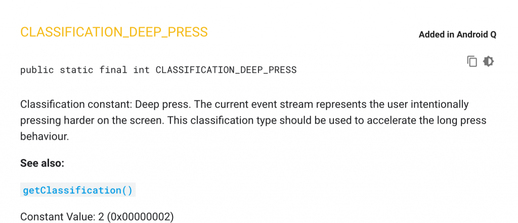 Il prossimo sistema operativo Android, chiamato Android Q, supporterà in modo nativo una funzionalità chiamata “deep press” e conosciuta anche come Force Touch o 3D Touch nel linguaggio iOS.