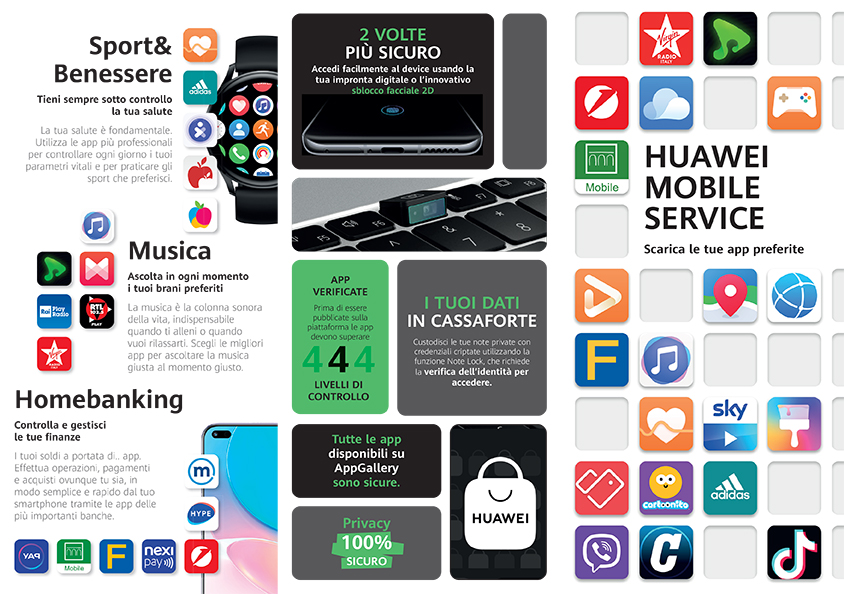Nel tempo AppGallery si è arricchita e completata, tanto che oggi può vantare la presenza delle principali banche italiane e dei più utilizzati sistemi di pagamento. Nello store di Huawei si trovano infatti le app di Agos, Banca d’Alba Mobile, Banca Generali, Banca Reale, Banca Sella, Banaperta, Bancomat Pay. Bper, BPM, BuddyBank, Connecta Open, Findomestic, Fineco, Genertel, Hype. Illimity, Inbank, Inps, Intesa Sanpaolo, IWBank, Mediolanum, Unicredit, MyCartaBCC, MyGenerali, Nexi Pay NoiPA, RelaxBanking Mobile, Satispay, Sella, Tinaba, UBI Banca, Webank, Widiba, Yap e YouApp.