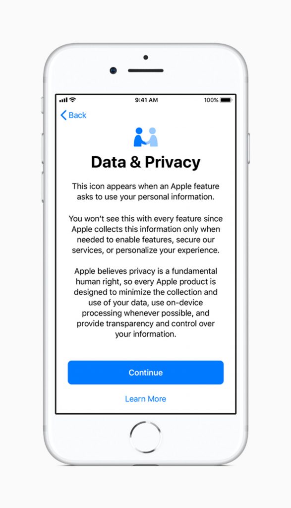 iOS 11.3 e macOS 10.13.4 introducono informazioni aggiornate sui dati e privacy che rendono ancora più semplice per gli utenti capire come i propri dati personali potrebbero essere utilizzati. Una nuova icona privacy e informazioni dettagliate sulla privacy appariranno ogni qualvolta Apple richiede l’accesso a informazioni personali per attivare funzioni, assicurare servizi Apple o personalizzare un’esperienza iOS.