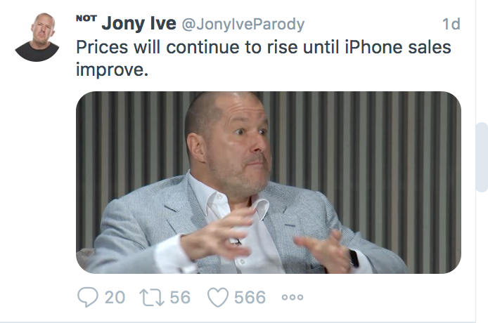 Intanto, sul Web spopolano i “meme“. Uno fra tutti sembra raccogliere i maggiori consensi: è l’account twitter “not Jony Ive, ossia la parodia di Jony Ive, attuale chief design officer di Apple, manager molto importante nelle strategie di sviluppo dei prodotti della Mela.