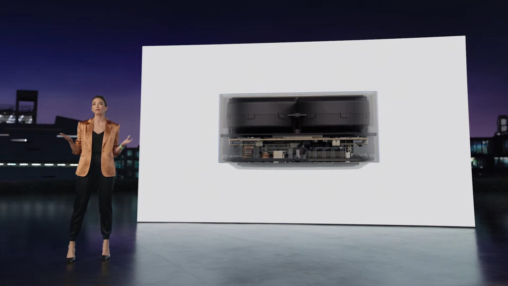 Questa potente macchina assomiglia ad un Mac mini “ingrassato”. È alta quasi 10 centimetri, larga e profonda 19 centimetri, un’altezza che consente ad Apple di integrare due grandi ventole per disperdere il calore e mantenere una temperatura sotto controllo al suo interno.