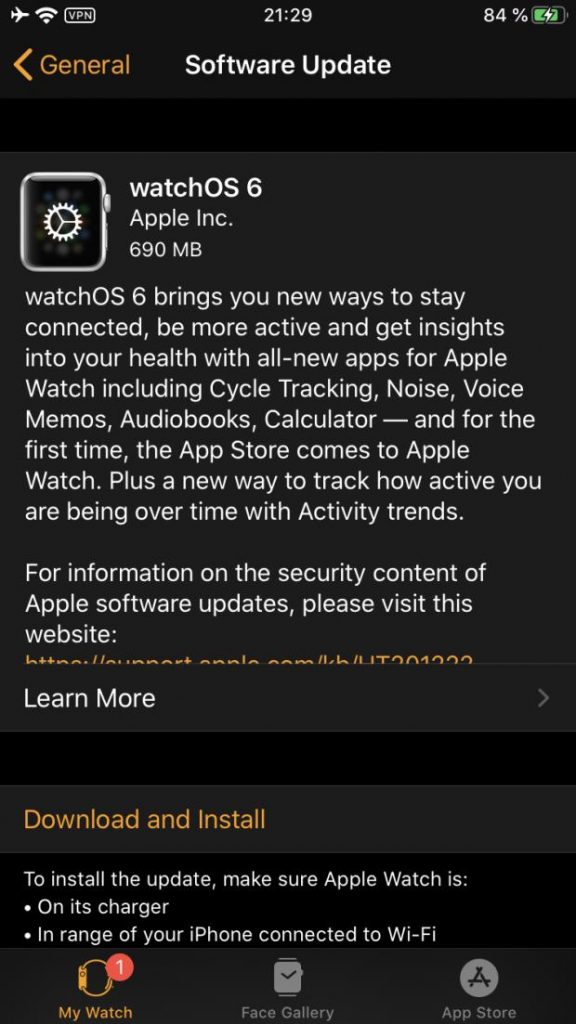 WatchOS 6 richiede però un iPhone 6s o successivo con il sistema operativo iOS 13 appena rilasciato ed è compatibile con Apple Watch Series 1, Apple Watch Series 2, Apple Watch Series 3, Apple Watch Series 4, e l’Apple Watch Series 5 recentemente annunciato e in arrivo il 20 settembre.