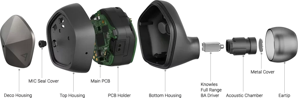 Troviamo un formato in-ear con punte in silicone (in totale cinque paia), ma soprattutto trasduttori ad armatura bilanciata simili alle cuffie cablate del produttore. Abbastanza per offrire, almeno sulla carta, un suono più preciso rispetto alla maggior parte delle soluzioni dinamiche disponibili sul mercato.