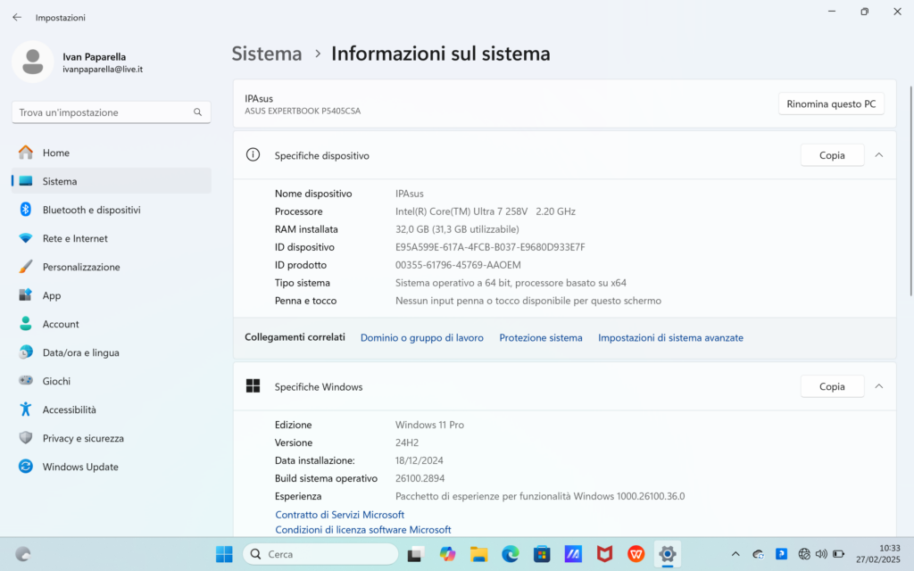 Asus ExpertBook P5 è equipaggiato con il processore Intel Core Ultra 7 258V, che offre prestazioni elevate grazie ai suoi 8 core e una frequenza di clock fino a 4,8 GHz, con una particolare architettura, capace di ottimizzare i consumi energetici, pur in presenza di grandi performance.