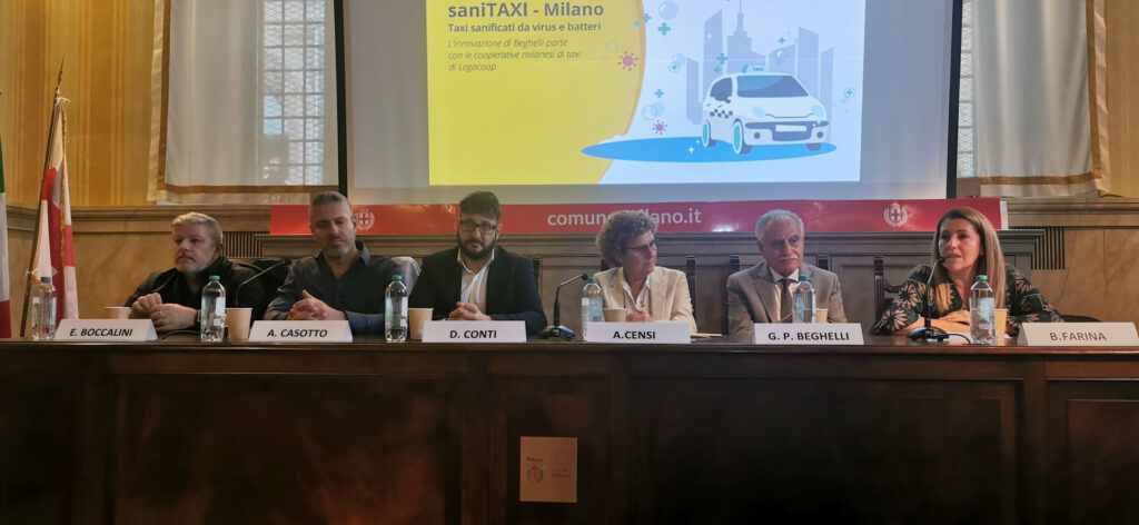 Beghelli ha presentato questa mattina a Milano, nella prestigiosa sede di Palazzo Marino, l’accordo per installare Sanificaaria Mini sui taxi del capoluogo lombardo grazie anche alla fattiva collaborazione delle cooperative meneghine di taxi di Legacoop.