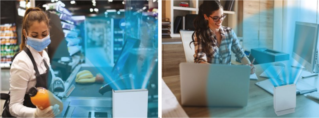 Il risultato di tanto lavoro si chiama Sanificaaria Mini, un dispositivo per la sanificazione dell’aria progettato per agire localmente. Utilizza la tecnologia brevettata ucOxy per l’inattivazione di batteri e virus, un procedimento che si basa su un sistema a camera chiusa saturato con raggi UV-C con efficacia testata fino al 99.9%.