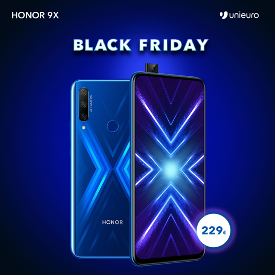 - E per finire, il prezzo: fino al 2 dicembre, HONOR 9X sarà disponibile con una offerta imperdibile solo negli store Unieuro (online e offline) al prezzo di €229 invece che €299 (prezzo di listino europeo)