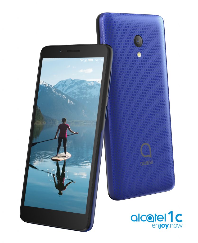 Alcatel 1C (2019) è dotato di uno schermo Full View Display da 5” con ratio 18:9 e offre un design curato impreziosito da una finitura texturizzata in diversi colori: Volcano Black, Enamel Blue e Blush Pink.