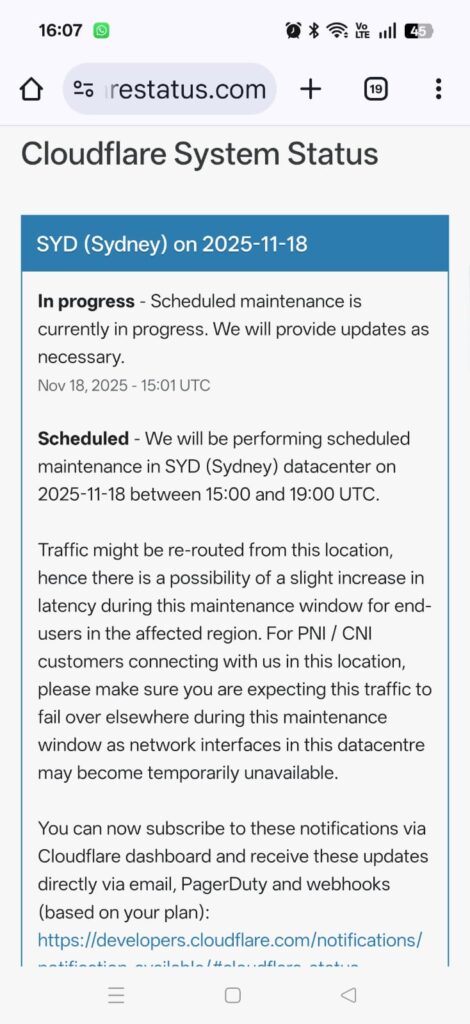 L’azienda ha confermato il disservizio e sta pubblicando aggiornamenti in tempo reale sulla propria Status Page. Al momento, i malfunzionamenti sembrano intermittenti: alcuni siti riescono a caricarsi saltuariamente, ma la situazione è ancora lontana dalla normalità.