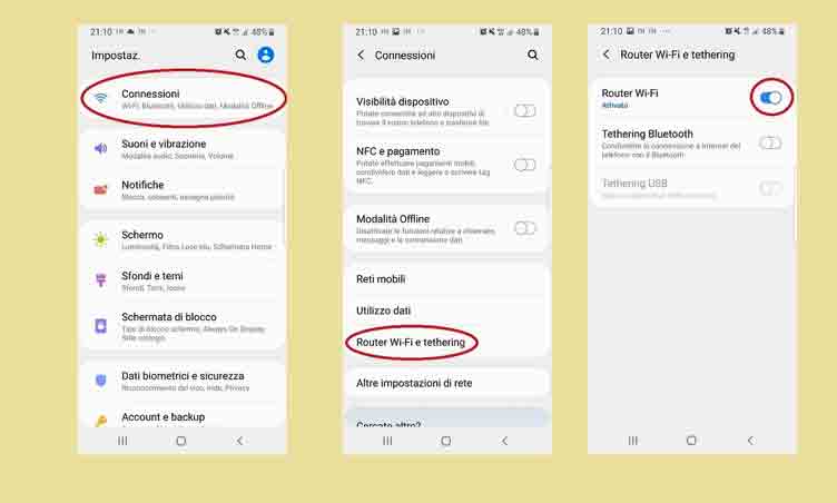 Attivare hotspot su Samsung è molto semplice ed è una procedura accessibile davvero a tutti. Tuttavia, bisogna considerare che ogni dispositivo Samsung è caratterizzato dalle proprie personalizzazioni e ciò potrebbe rendere più complicato l’individuazione della funzione di hotspot. Ecco perché, indicativamente, la funzione di hotspot si troverà all’interno delle impostazioni del dispositivo. In questa sezione, dovresti trovare delle voci che dovrebbero indicarti il tuo hotspot. Alcuni di queste sono: Reti, Wi-Fi, Connessioni. Una volta che hai avuto accesso al tuo hotspot, ti suggeriamo di applicare una password per evitare che anche le persone sconosciute accedano alla tua connessione. Quindi, ecco i passaggi riassuntivi per come fare hotspot da Samsung: