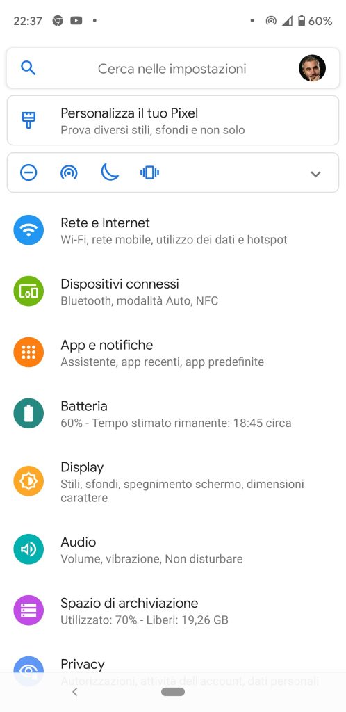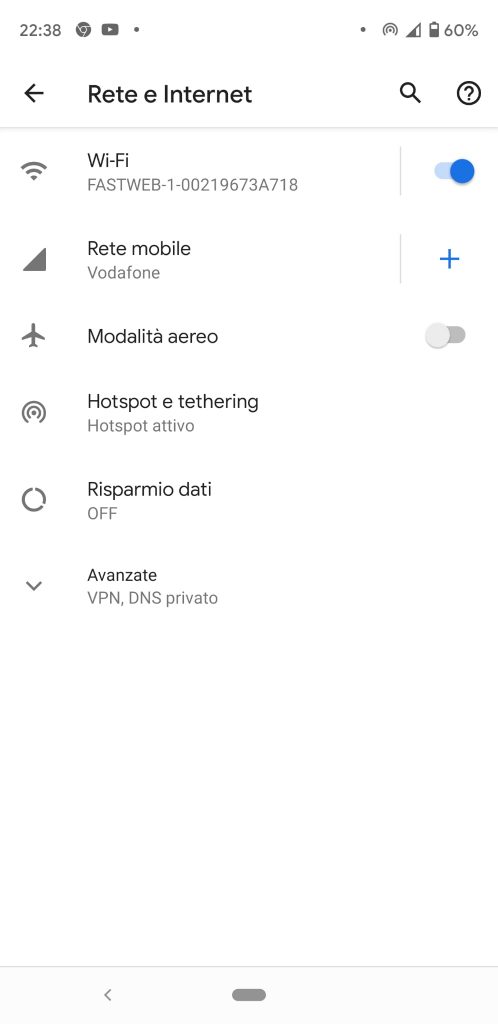 Nel caso non la troviate nel menù a tendina, dovrete andare nelle “Impostazioni” del telefono e cliccare su “Rete e Internet”, nell’immagine qui sotto è la prima della lista.