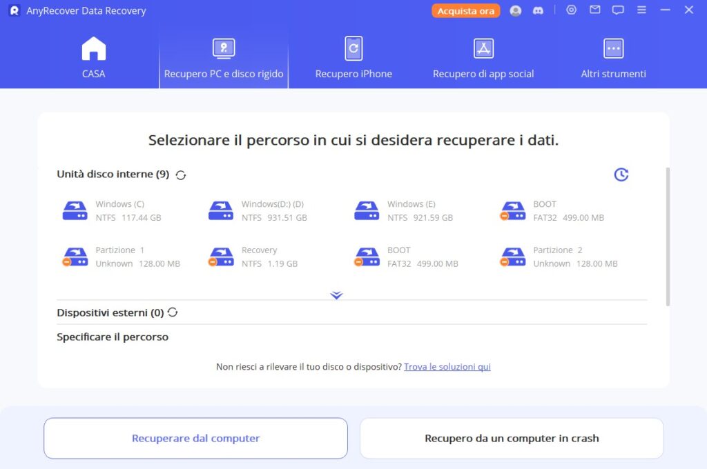 3. Il miglior modo per recuperare un Hard Disk Esterno, utilizzando AnyRecover
