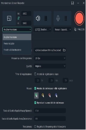- selezionare la modalità di registrazione, personalizzando anche le impostazioni audio, l’area dello schermo da catturare, la voce da registrare e altri dettagli come il colore del click del mouse e la frequenza dei fotogrammi;