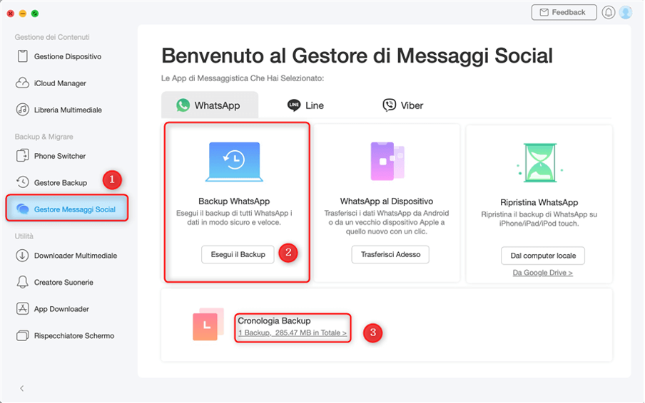 Scarica AnyTrans gratuitamente sul computer ora, salva WhatsApp sul computer in pochi passaggi.