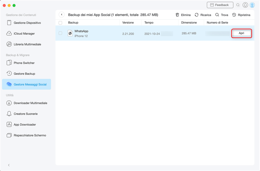 Passo 3. Fai clic su Apri per accedere al backup di WhatsApp.