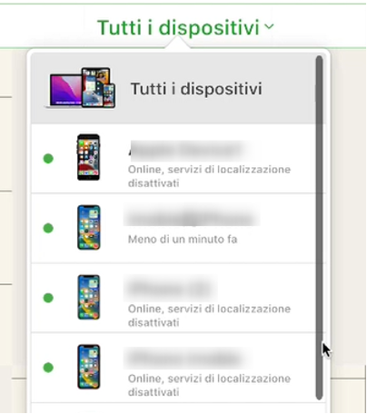 Passo 2. Fai clic su “Tutti i dispositivi” nella parte superiore dello schermo, scegli il dispositivo che desideri cancellare dal tuo account iCloud.
