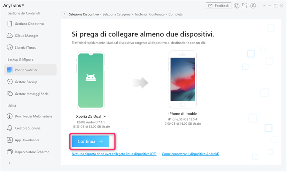 - AnyTrans è in grado di trasferire tutti i dati da Android a iPhone dopo configurazione con un clic senza ripristinare.