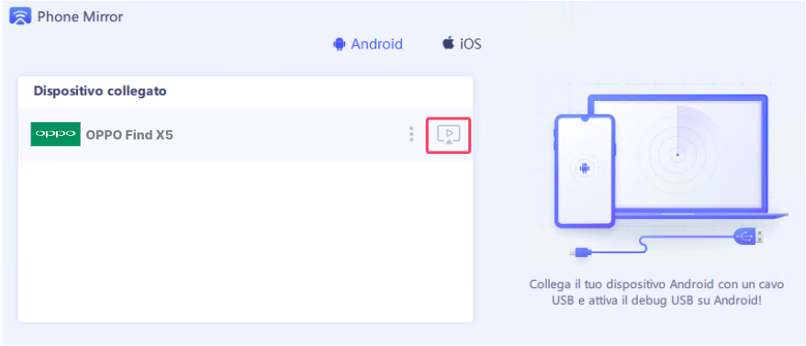 Passo 1. Avvia Phone Mirror e seleziona [Android].