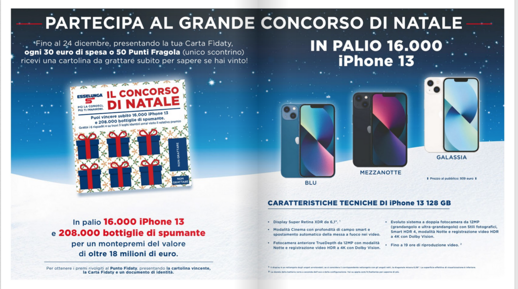 Infatti, Esselunga mette in palio ben 1.000 iPhone 13 di Apple al giorno!