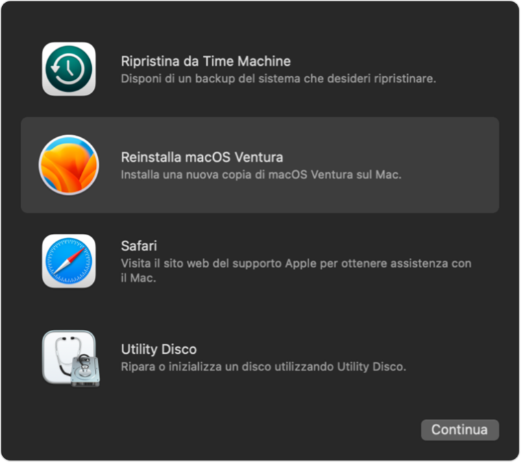 Modo 3:reinstallare macOS Ventura dall’unità avviabile.