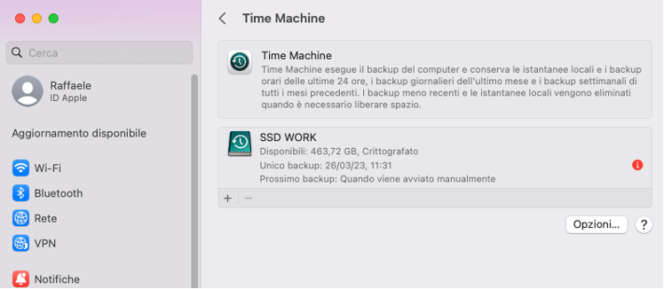 Modo 1:Downgrade di macOS Sonoma con Time Machine.