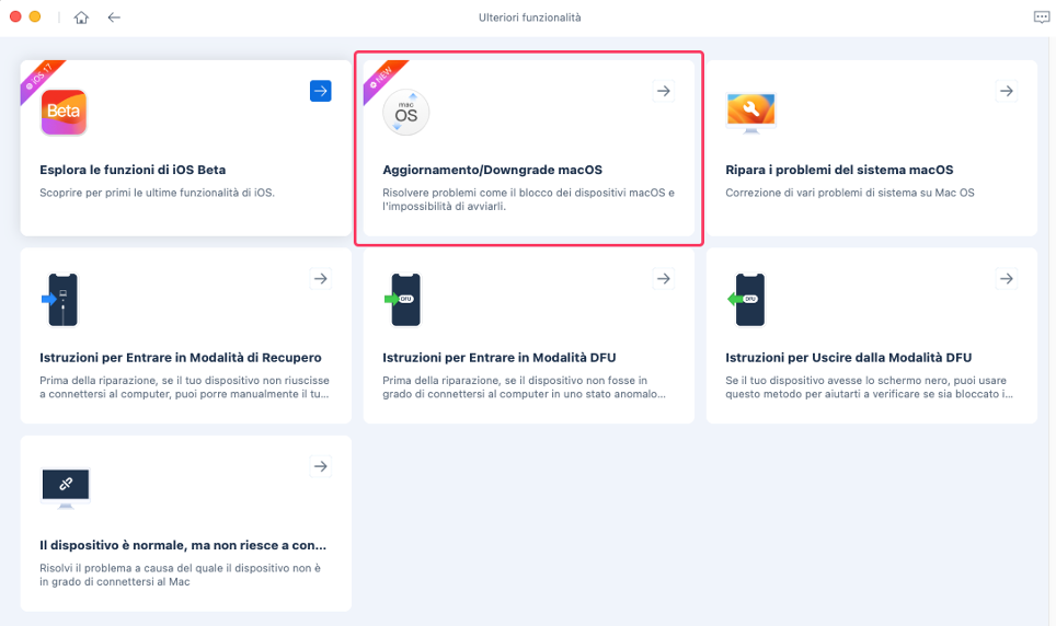 Parte 3: downgrade da macOS Sonoma a Ventura con ReiBoot. Se macOS 14 (Sonoma) non ti soddisfa e vuoi tornare a macOS 13 (Ventura), ti suggerisco di utilizzare Tenorshare ReiBoot. Questo software è stato appositamente progettato per gestire i sistemi operativi macOS, iOS e iPadOS e ti permette di effettuare il downgrade del tuo sistema con facilità, senza rischiare di perdere alcun dato. Di seguito ti fornisco le istruzioni su come effettuare il downgrade da macOS Sonoma a macOS Ventura gratuitamente utilizzando ReiBoot. Importante: È possibile eseguire il downgrade sia dalla versione beta pubblica di macOS Sonoma che dalla versione stabile futura. Cosa serve prima di procedere?