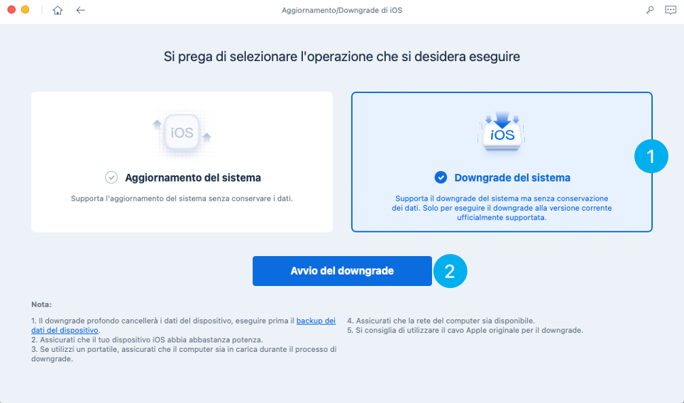 Passaggio 2. Seleziona “Downgrade del sistema”.