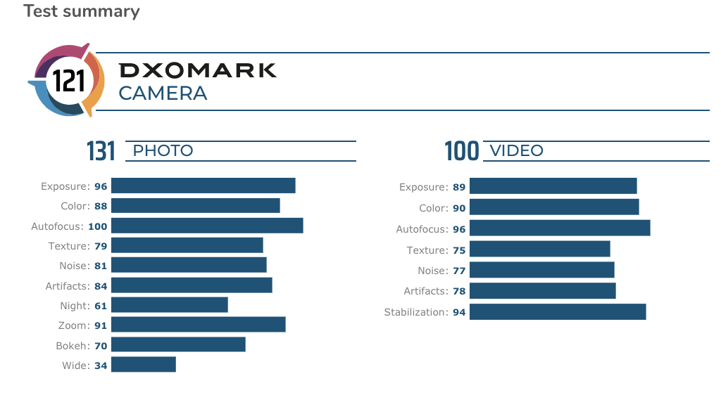 DxOMark ha confermato che la fotocamera si muove perfettamente tra tutte le categorie di foto in cui è stata testata, ottenendo punteggi particolarmente alti sia nella trama che nel rumore. In effetti, DxOMark afferma che la fotocamera è “in grado di bilanciare perfettamente i due attributi”.