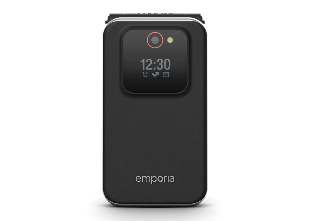 Questo nuovo telefono pieghevole è certificato IP54 (a prova di polvere e liquidi) e particolarmente adatto ai portatori di apparecchi acustici (M4/T4). Il pulsante brevettato di chiamata d’emergenza emporia sul retro del telefono garantisce la sicurezza dei senior anche in caso di cadute o altre criticità.