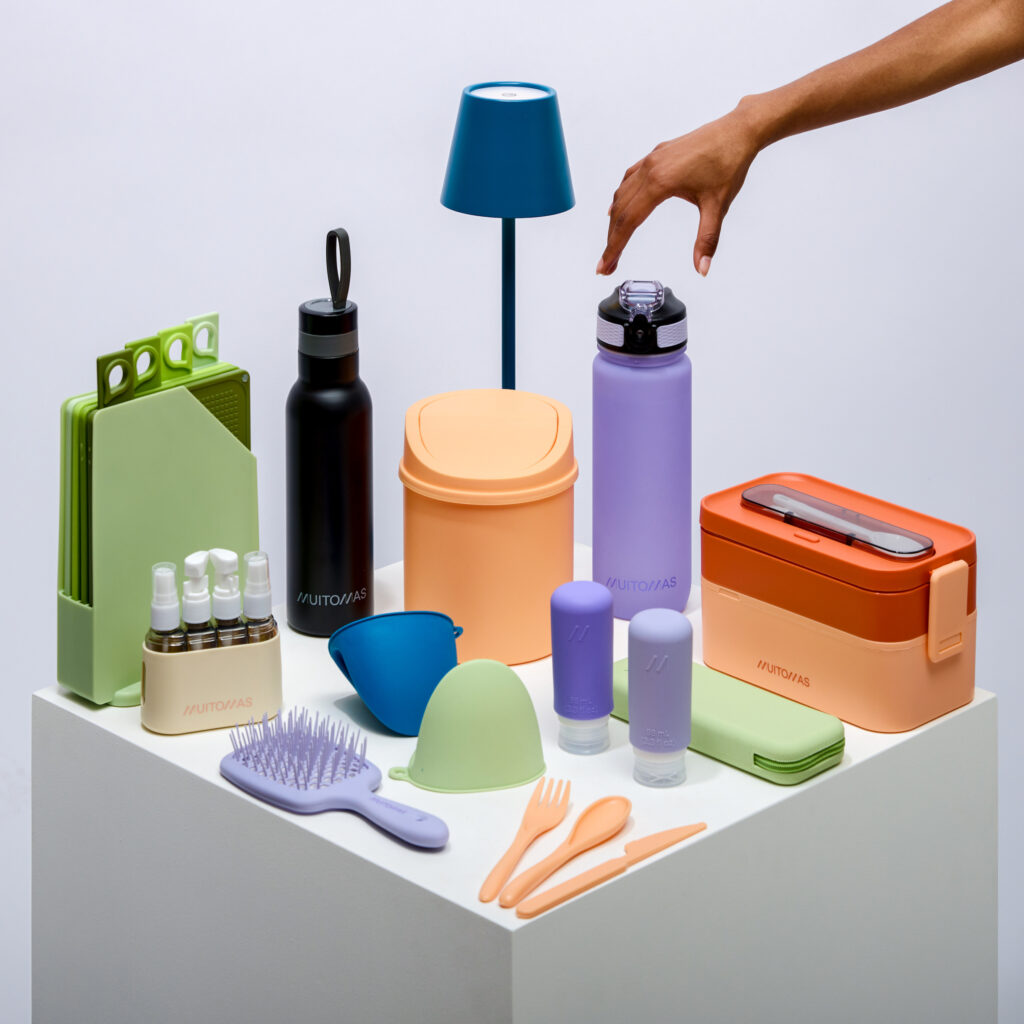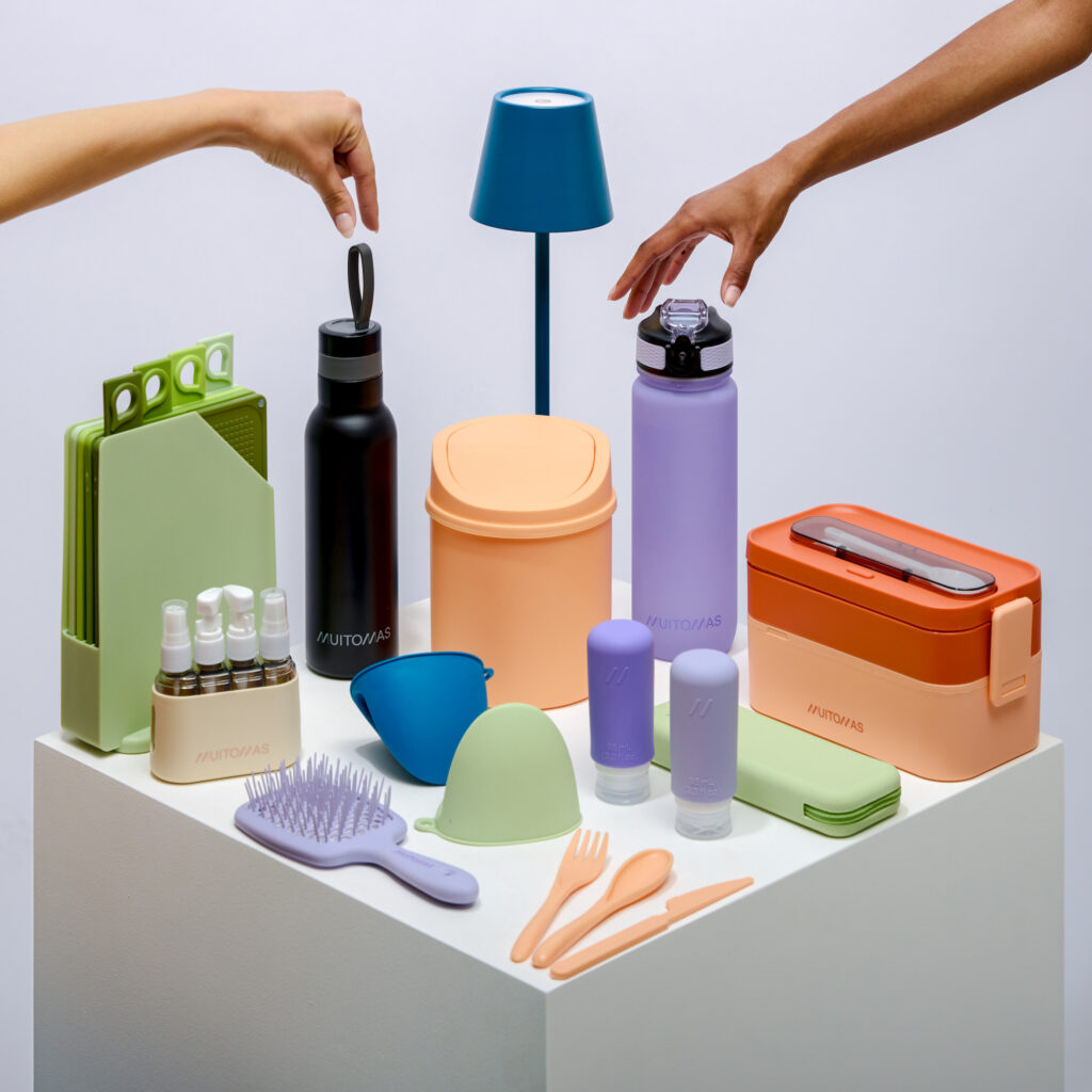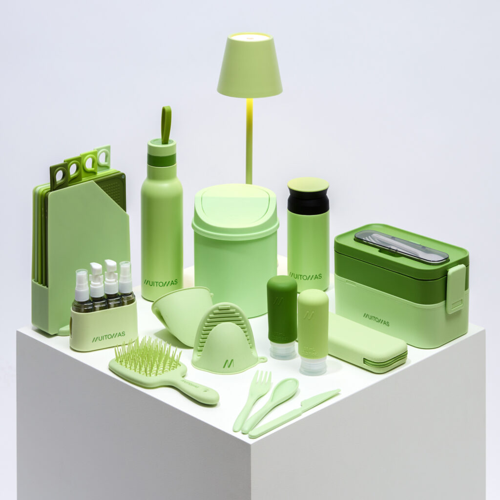 Tutti i prodotti sono accuratamente selezionati dal punto di vista del design e della scelta dei colori, perfettamente in linea con i trend del momento: peach fuzz, verde salvia, blu ottanio e lilla, oltre ai classici bianco e nero. Proprio il colore rappresenta infatti uno dei punti di forza di Muitomas, grazie alla possibilità di creare e collezionare set coordinati nella nuance preferita, da arricchire nel corso del tempo.