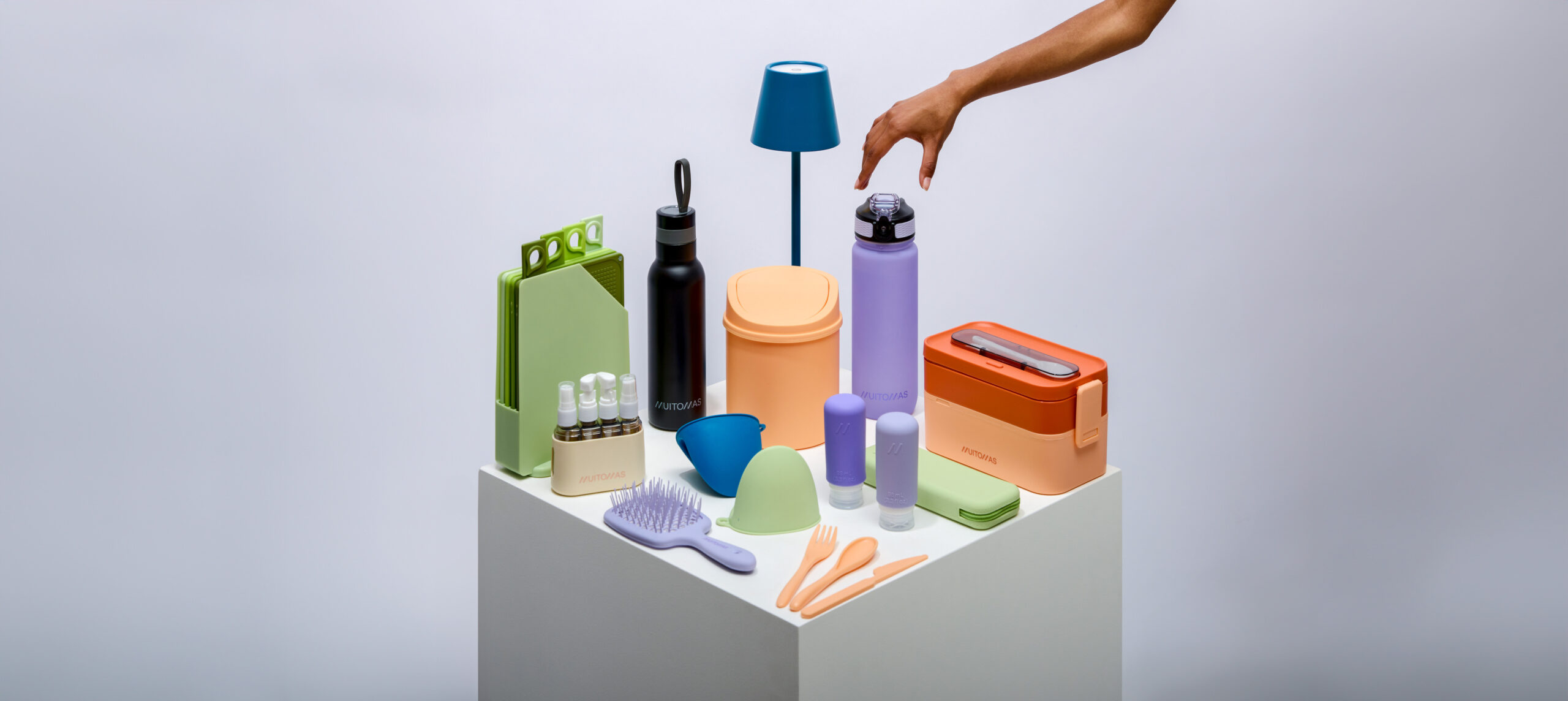 Tutti i prodotti sono accuratamente selezionati dal punto di vista del design e della scelta dei colori, perfettamente in linea con i trend del momento: peach fuzz, verde salvia, blu ottanio e lilla, oltre ai classici bianco e nero. Proprio il colore rappresenta infatti uno dei punti di forza di Muitomas, grazie alla possibilità di creare e collezionare set coordinati nella nuance preferita, da arricchire nel corso del tempo.