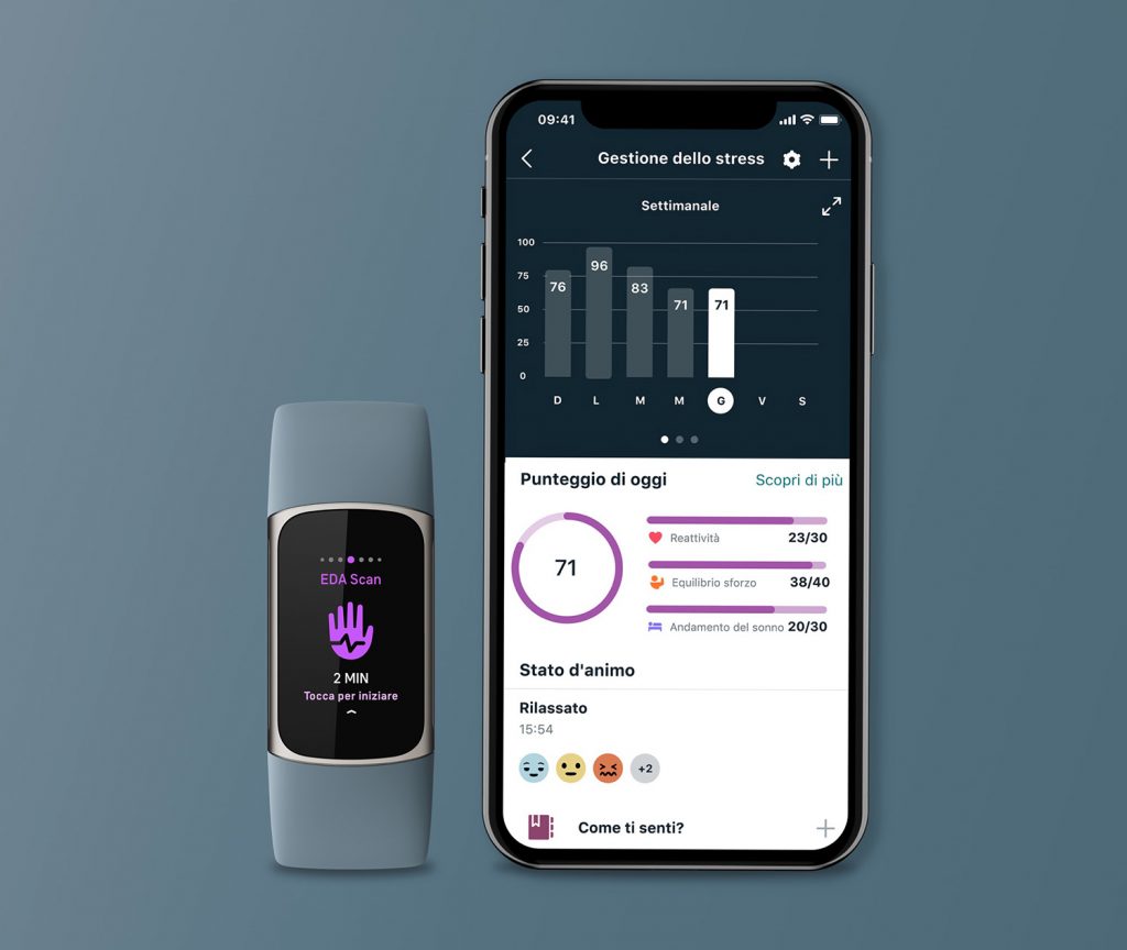 Nel 2020, il 40% degli adulti ha affermato di sentirsi molto stressato: si tratta della percentuale più alta mai registrata. Per aiutare a gestire meglio questa condizione, Charge 5 è il primo tracker Fitbit ad offrire un sensore EDA che misura la risposta del corpo allo stress rilevando i piccoli cambiamenti nelle ghiandole sudoripare sulle dita. La scansione EDA è stata introdotta lo scorso autunno con Fitbit Sense e in questo periodo il 70% degli utenti è riuscito a diminuire il proprio battito cardiaco durante una sessione EDA Scan di due minuti, a dimostrazione che questi strumenti possono contribuire a ridurre lo stress.