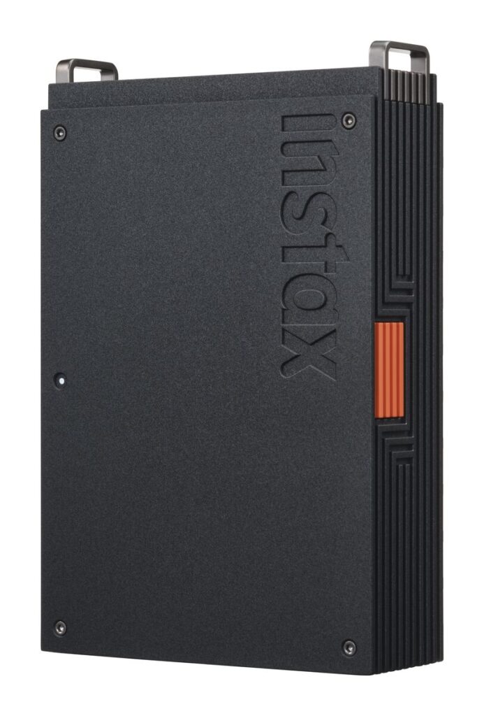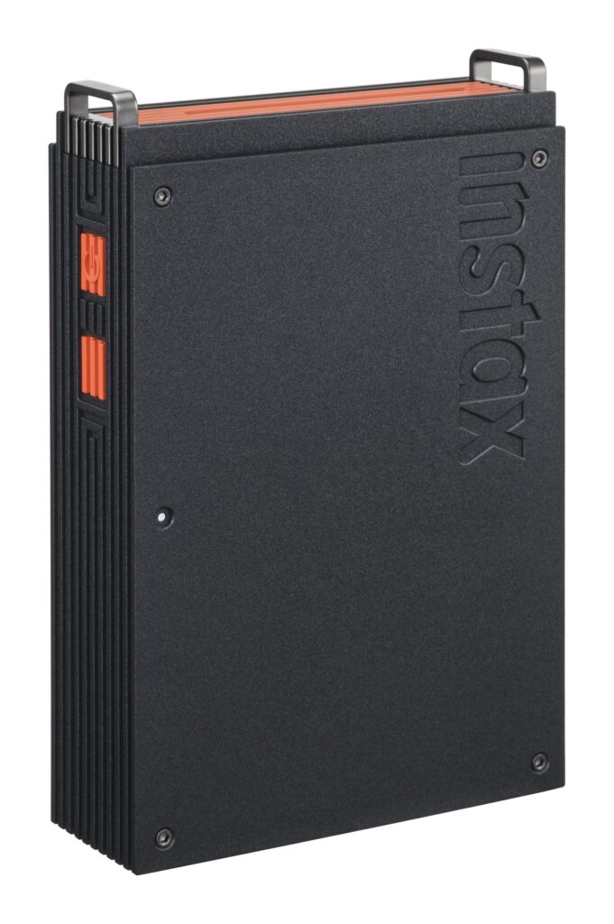 La nuova instax mini Link+ si posiziona come modello premium all’interno della gamma di stampanti per smartphone instax mini. Il design si distingue per una scocca nera con dettagli arancioni e per la presenza di un gancio in metallo, elemento che richiama un’estetica più curata rispetto ai modelli base.