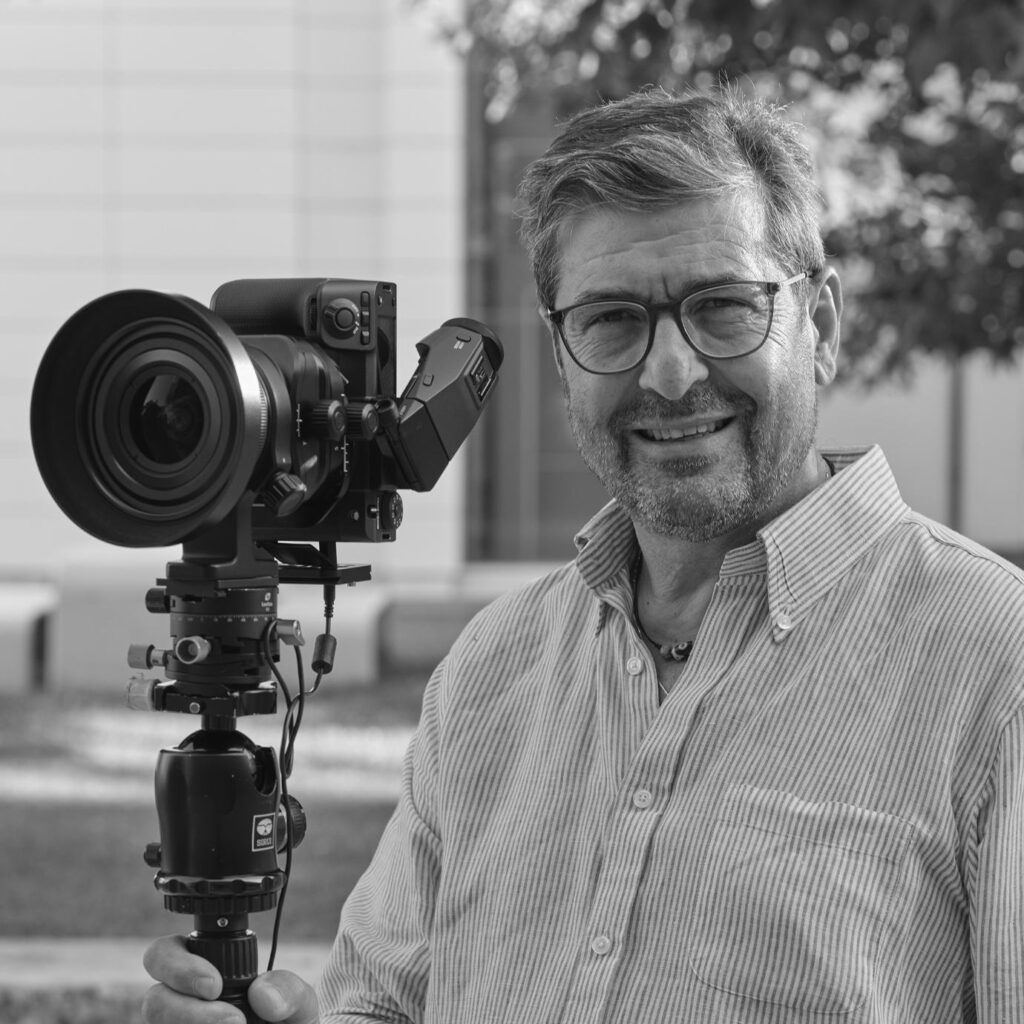 Utilizza macchine fotografiche tecniche da sempre, sia in pellicola sia in digitale.