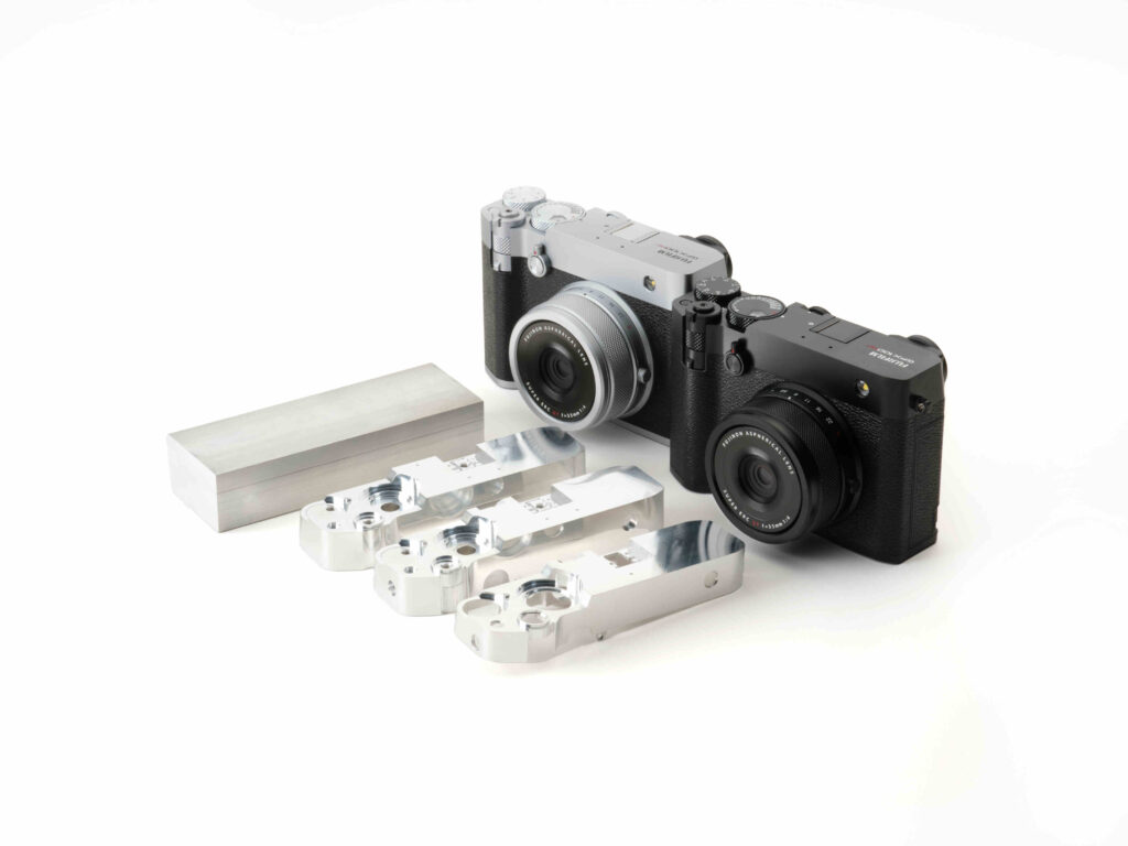 La GFX100RF si distingue per un design elegante, curato nei minimi dettagli, con componenti realizzati in alluminio tramite un processo di taglio di precisione. Questo conferisce un aspetto sofisticato e una sensazione di solidità, pur mantenendo un peso contenuto di 735 grammi (inclusa batteria e scheda di memoria). L’ottimizzazione della struttura interna e l’uso di un nuovo obiettivo progettato specificamente per questo modello hanno permesso di ridurre le dimensioni della fotocamera, migliorandone la maneggevolezza.