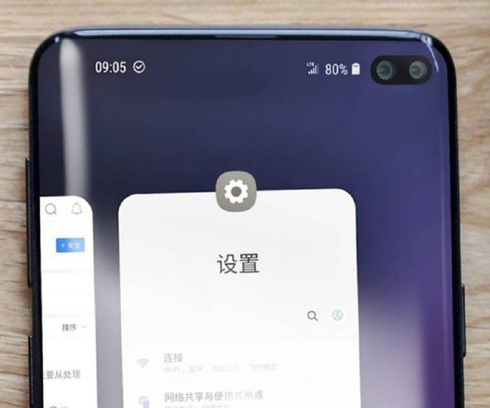 Da quello che si può vedere le telecamere verranno incorporate nel vetro per evitare l’uso di una notch, ma allo stesso tempo per migliorare il più possibile lo schermo disponibile. Questa foto mostra che le informazioni normalmente posizionate nell’angolo in alto a destra sui telefoni Samsung sono ora spostate più vicino al centro, includendo qui la percentuale della batteria e l’indicatore del segnale di rete.