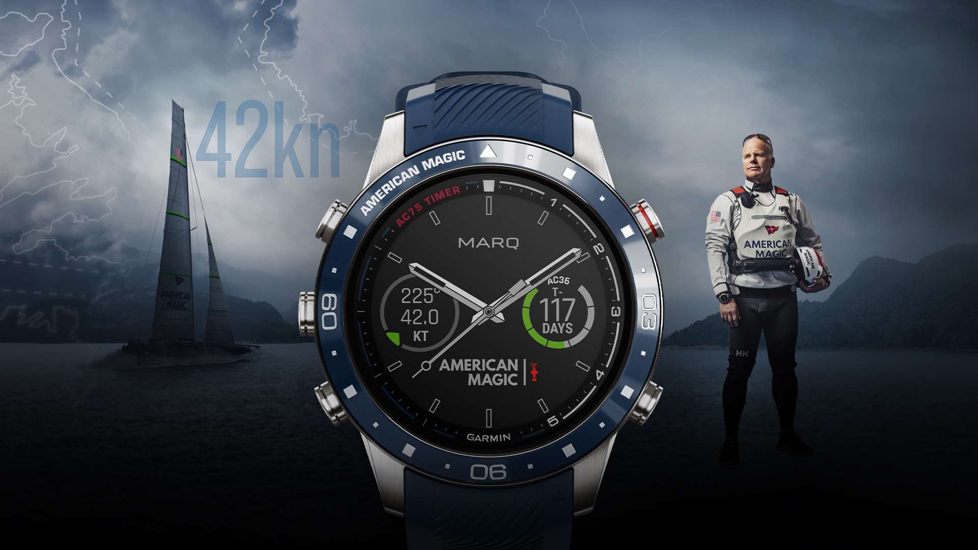 L’iconica serie di tool watch Garmin MARQ, distribuita nelle più esclusive orologerie, si arricchisce oggi di un nuovo modello di smartwatch dedicato a tutti gli appassionati del mare e in particolare della vela e dei match race. Nasce Garmin MARQ Captain: American Magic Edition, sviluppato in collaborazione con l’omonimo team a stelle e strisce American Magic, in preparazione alla 36sima edizione della prestigiosa competizione internazionale.Un orologio che racchiude innovazione ed eleganza, oltre che attenzione alla preparazione atletica.