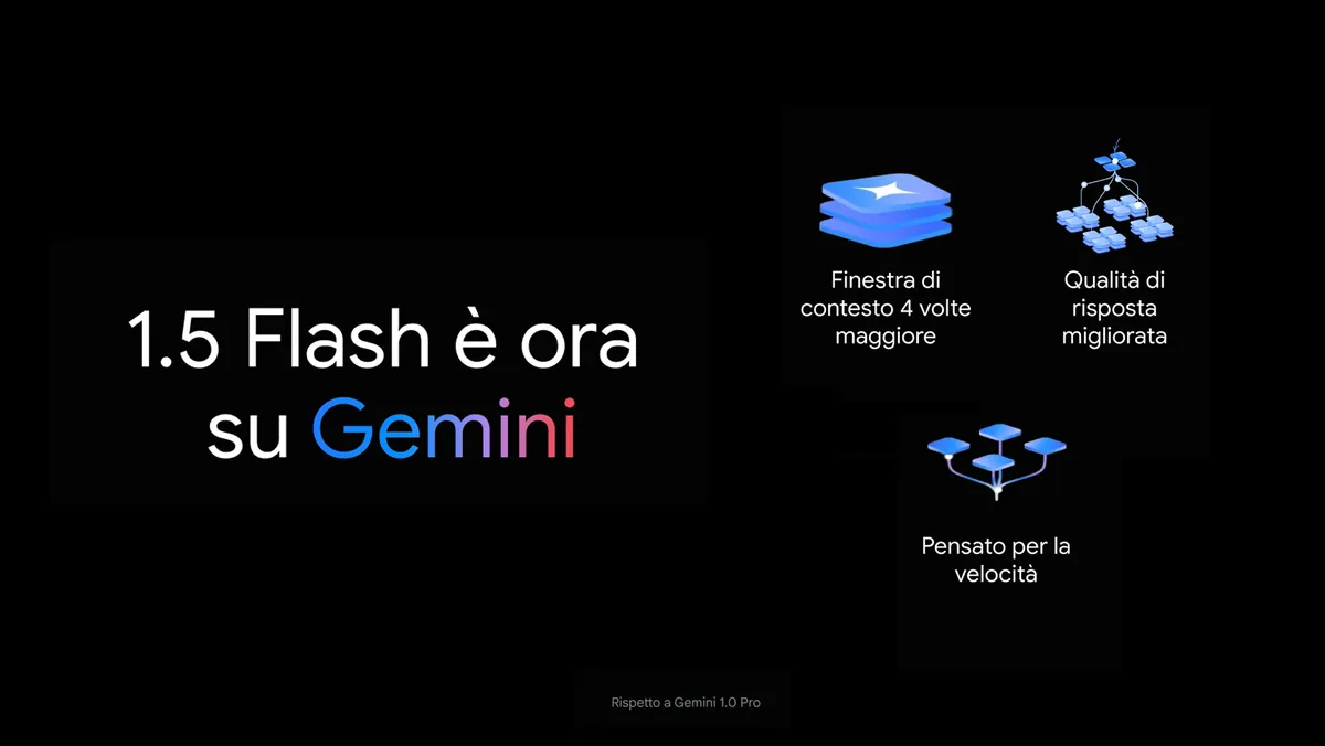 Il nuovo modello 1.5 Flash di Gemini è stato progettato per ottimizzare il tempo degli utenti, con l’obiettivo di fornire risposte più rapide e precise. Questa versione aggiornata, disponibile sia su web che su dispositivi mobili, estende la finestra di contesto a 32.000 token, quadruplicando così la capacità rispetto alla versione precedente. Questo consentirà conversazioni più lunghe e la possibilità di porre domande più complesse. Presto sarà possibile caricare file tramite Google Drive o direttamente dal proprio dispositivo, facilitando attività come lo studio e la creazione di domande pratiche. Gemini sarà anche in grado di analizzare file di dati, per offrire approfondimenti e visualizzazioni grafiche.