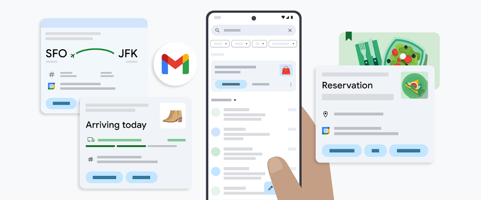 - Nuovo design delle schede riepilogative: Le email relative a acquisti, eventi, bollette e viaggi avranno un layout migliorato, con pulsanti di azione rapida. Sarà possibile aggiungere eventi al Calendario, impostare promemoria per pagamenti o inviare inviti con pochi clic.