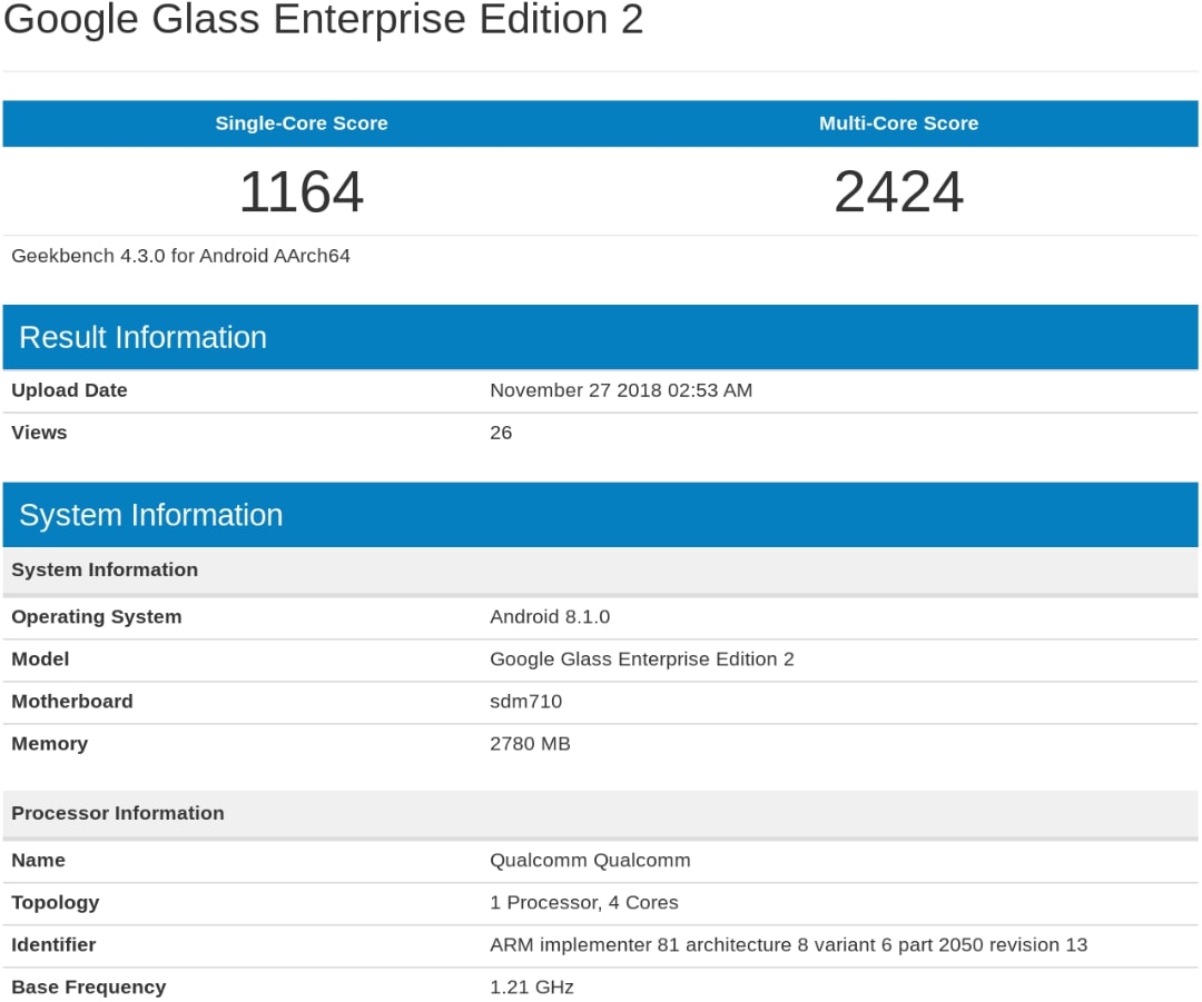 Una nuova versione dei Google Glass Enterprise Edition è stata individuata sull’app di benchmark Geekbench. Sono emersi quindi alcuni dettagli tecnici di ciò che potrebbe arrivare con il secondo modello degli occhiali futuristici che non hanno mai fatto breccia nel cuore degli appassionati di tecnologia anche per via del prezzo di 1500$ a cui sono stati proposti fin da subito.